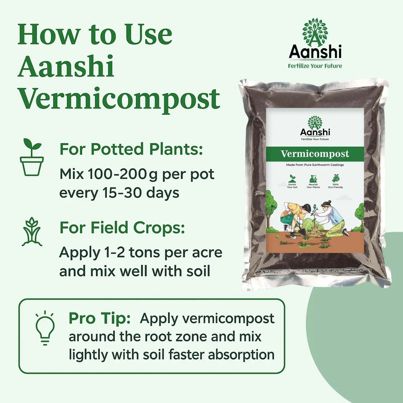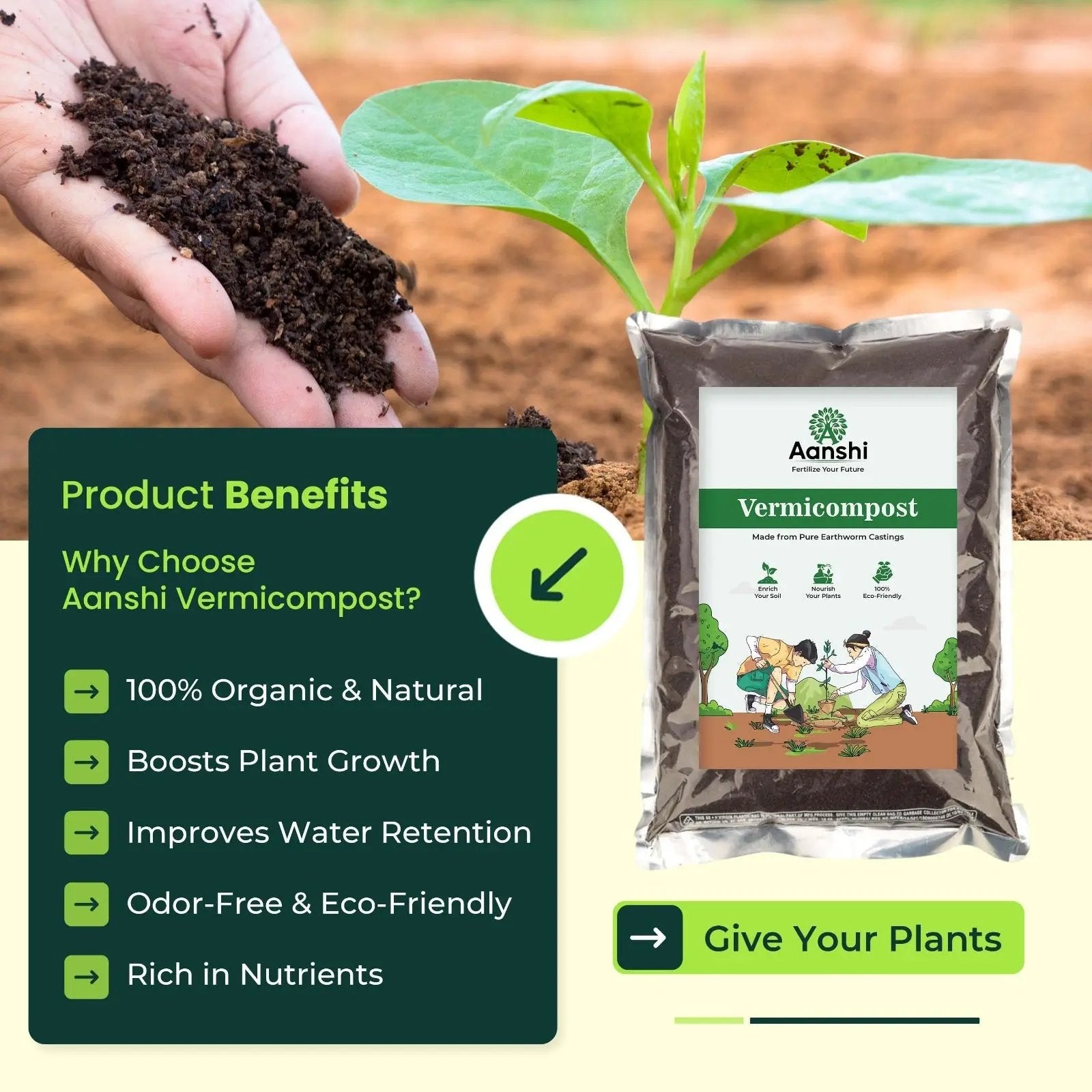 Aanshi Organic Vermicompost – 100% Pure Earthworm Castings | Enriches Soil & Boosts Plant Growth